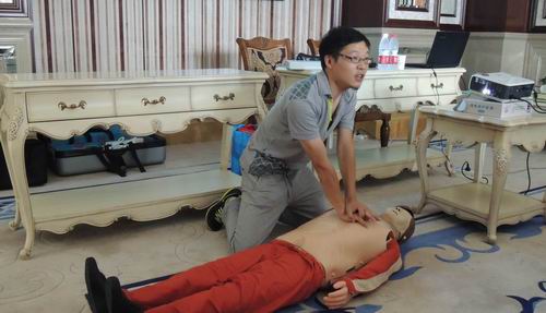 培训中,,,,,,,医生详细解说和演示了心肺苏醒、人工呼吸、创伤抢救、气道梗阻的抢救、现场骨折牢靠、血压器的使用等内容,,,,,,,同时医生还指导参训员工们上台举行实操演练,,,,,,,在实操中答疑解惑,,,,,,,现场气氛活跃。。。。。